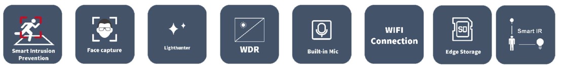 - Prevenzione intelligente delle intrusioni, supporta il filtraggio dei falsi allarmi, include Cross Line, Intrusion, Entra nell'area, Esci dall'area.