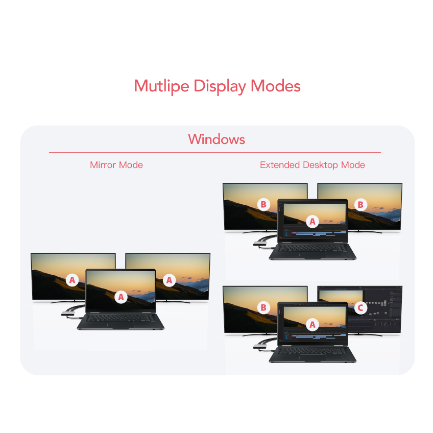 * Supporta risoluzioni video UHD fino a 4K@60Hz 4:4:4 per display singolo o doppio (richiede dispositivi USB-C per supportare l'uscita con risoluzione 8K e una larghezza di banda sufficiente)