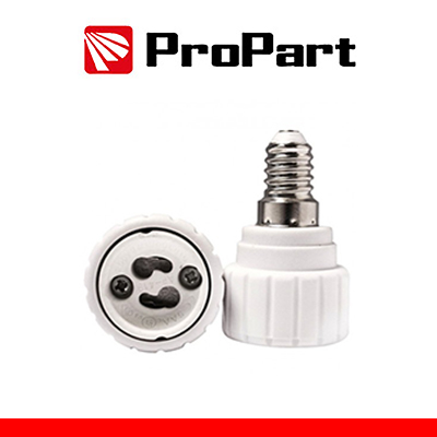Adattatore per lampada, da E14 a GU10 in termoplastica PBT - 2A 250V - 40W max