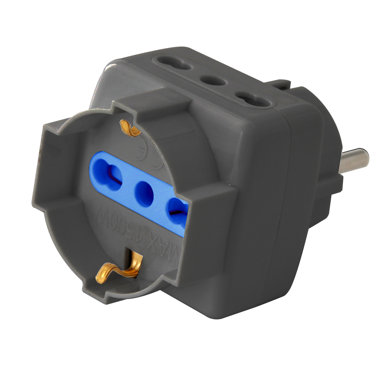 Adattatore triplo 3pos bipasso/schuko spina Schuko nero