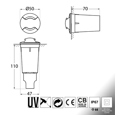 Progettato per essere installato a pavimento, a parete o a soffitto, il faretto ALDO 2L è realizzato in resina antiurto, resistente alla corrosione, all’ossidazione e ai raggi UV. Con un grado di protezione IP67, è perfetto per l'uso in esterni, garantendo prestazioni durature anche in condizioni climatiche difficili.