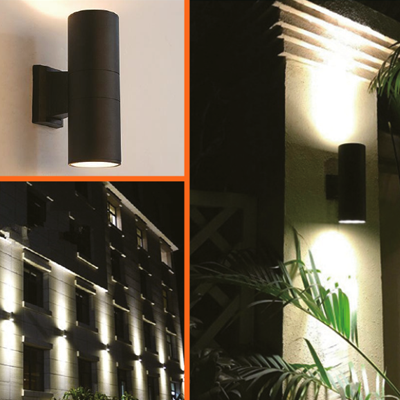 Supporto da parete per due lampade led con attacco GU10. Emissione luce bidirezionale (verso l''alto e verso il basso).