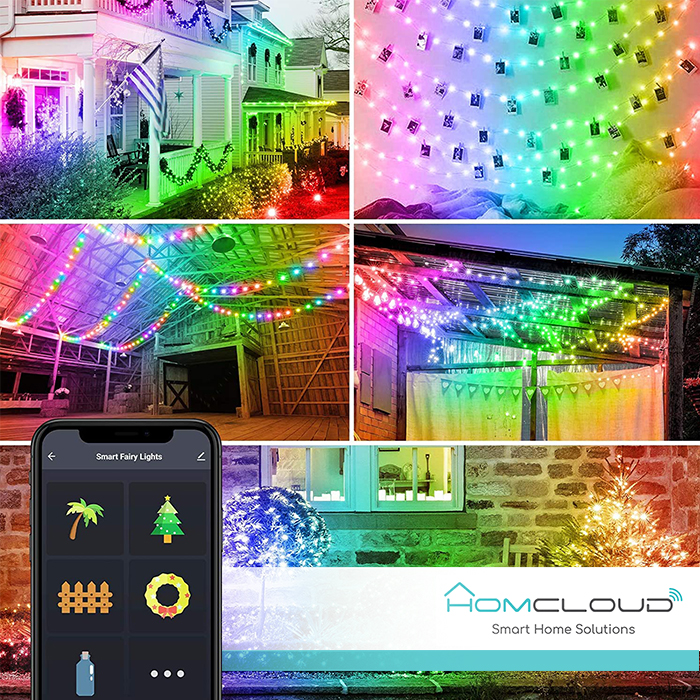 Lunghezza 10Metri + 2Metri di cavo / Sincro con musica / 1 LED ogni 15 cm / Da esterno / Compatibile con Amazon Alexa e Google Home.