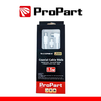 Cavo coassiale antenna TV 90 Ω IEC Spina 90° - Presa 90° + ADATTATORE spina-spina / 1.5Metri / PROPART / BLISTER
