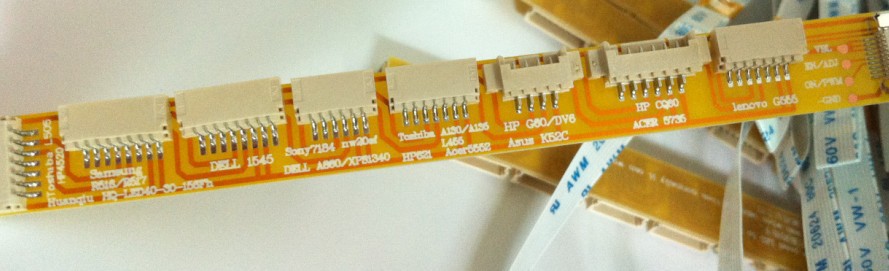 Before using our products, firstly, you need to remove the original screen and inverter(high-voltage bar) from your laptop. Secondly, connect the 15.6" LED with our converter, in the meantime, the cable from laptop should be connected with our converter's connector(each pin on this connector stays 1mm away from the next one).Thirdly, connect the position where the inverter once connected with port on our converter's PCB board. You can read compatible laptop models written on the board while you connect them. Then, congratulations, you can use your laptop now.