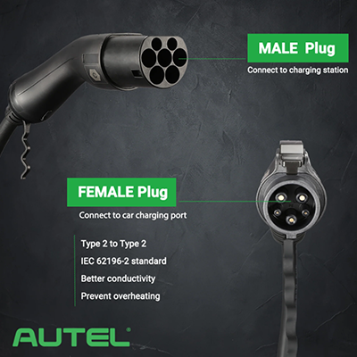 Cavo Ricarica Auto Elettrica Tipo2 32A 7KW 5M 1FASE