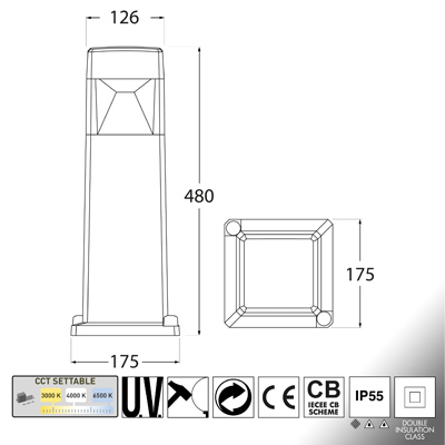 Anti-shock CB CCT settable CE Double Insulation Class II IP55 Recyclable Temperature+90-60 TUV UV Treated