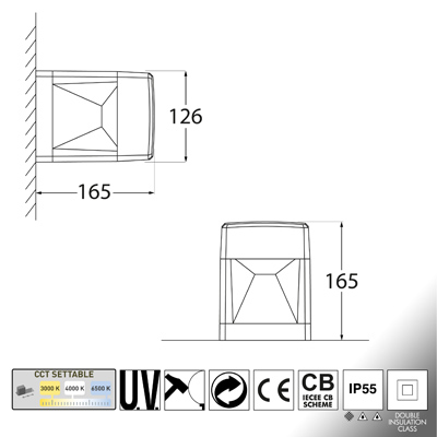 Anti-shock CB CCT settable CE Double Insulation Class II IP55 Recyclable Temperature+90-60 TUV UV Treated