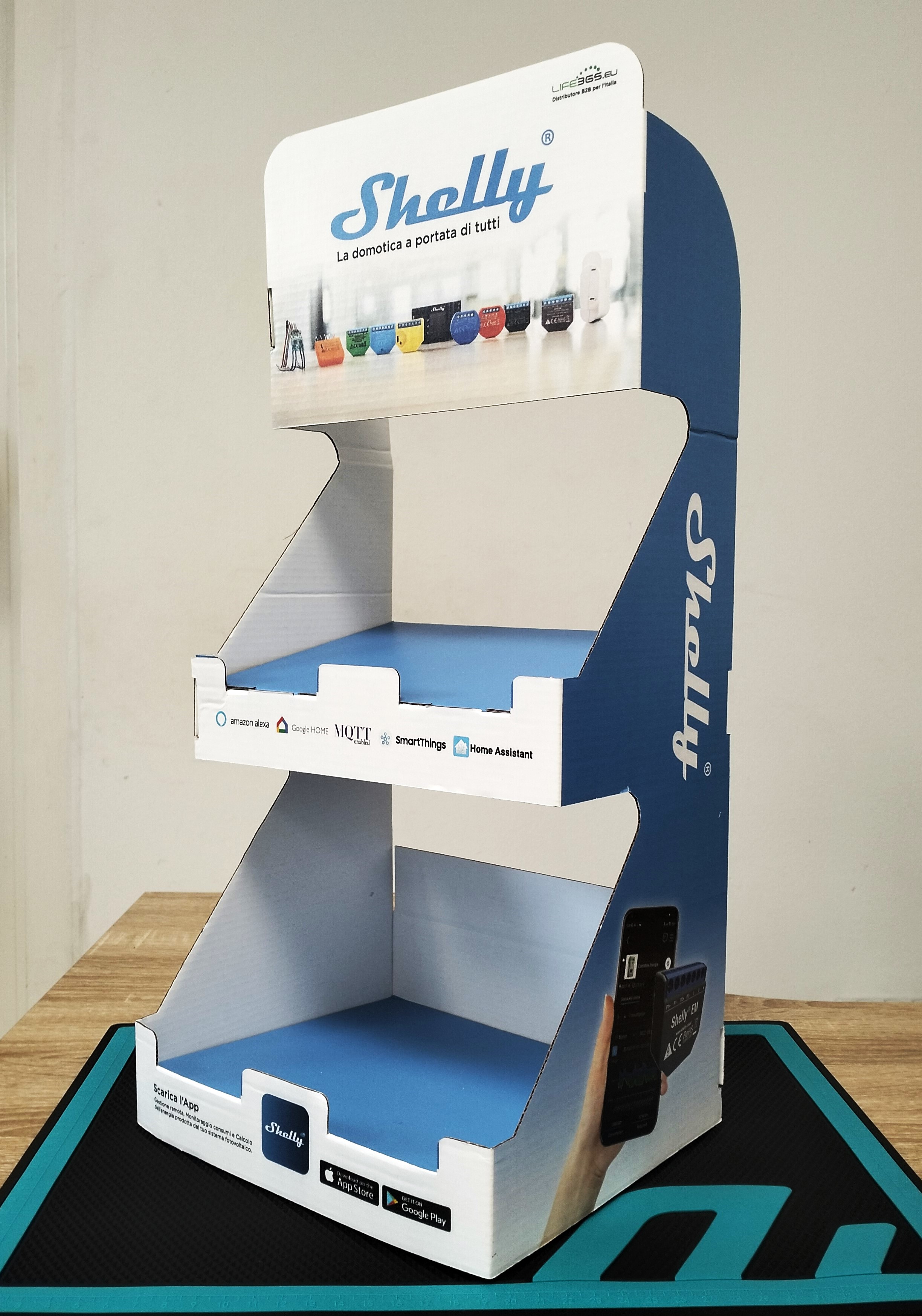 Espositore da banco Shelly in cartoncino - 2 ripiani + crowner