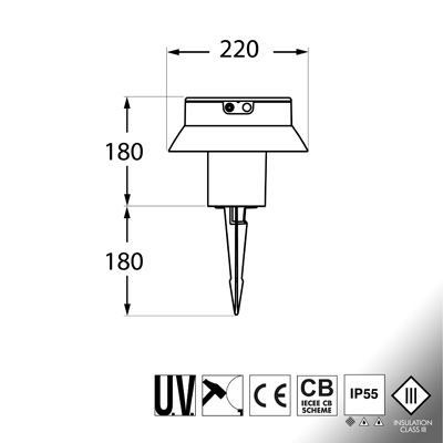 • Flessibilità nell'installazione: Grazie alla versione con picchetto (spike) o paletto, può essere facilmente installato su terreni o superfici piane.