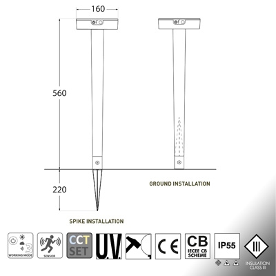FELICE 800 NERO SOLAR LED Ø150 PIR CCT S - 73 cm