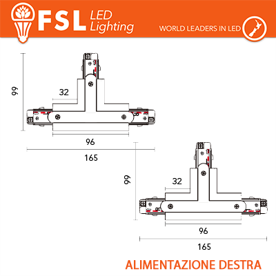 FSL Connettore Forma T destra per Binario Trifase - Colore BIANC