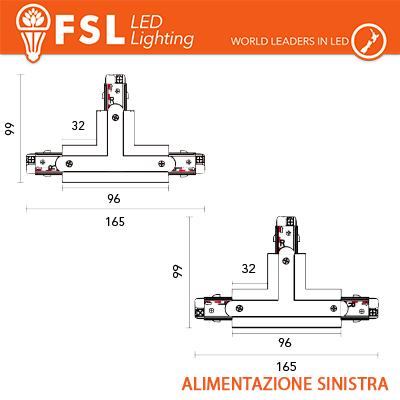 FSL Connettore Forma T sinistra per Binario Trifase - Colore BIA