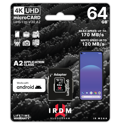 GoodRAM microSD IRDM 64GB UHS I U3 A2 + adapter - IR-M2AA-0640R1
