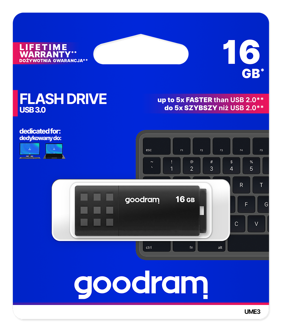 GoodRAM Pendrive 16GB UTS3 BLACK USB 3.0 - retail blister - UTS3