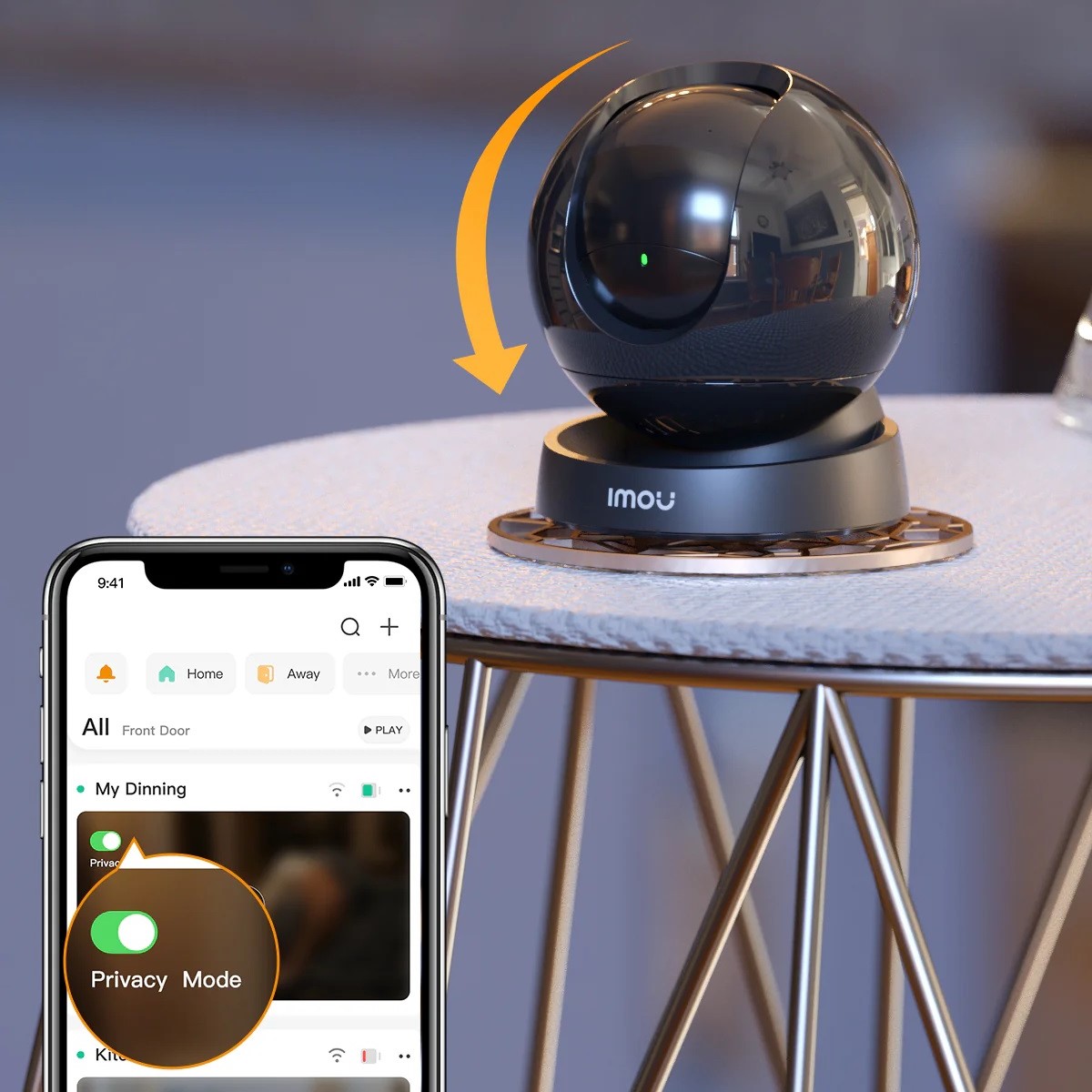 Telecamera da interno IP/Wi-Fi da 3MP (2K) con IMOU SENSE motorizzata con sirena integrata e faretto - Forma a sfera
