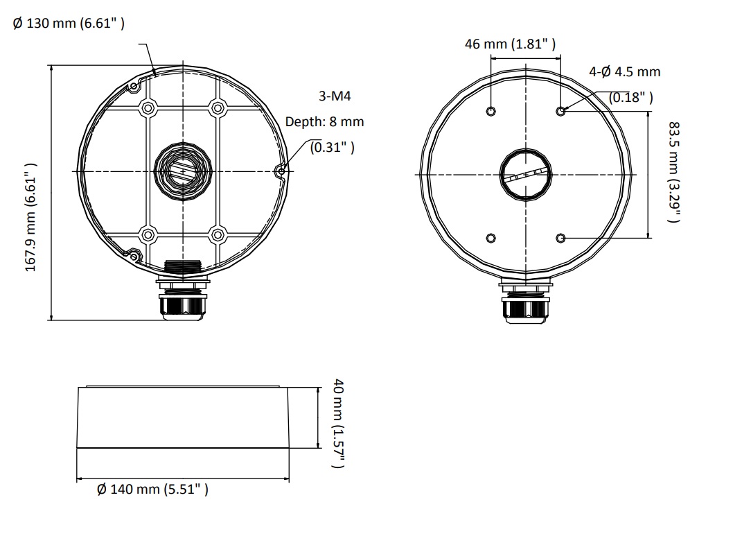 Junction box parete per telecamere Hilook THC-T2x, THC-T3xx