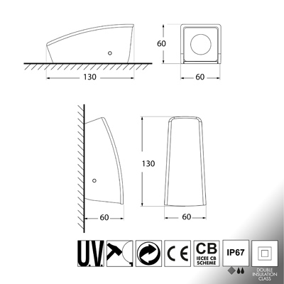 Realizzata in resina antiurto, stabilizzata ai raggi UV e completamente resistente alla ruggine e corrosione, questa lampada è progettata per resistere nel tempo e affrontare le condizioni atmosferiche più difficili. La classe di protezione IP67 garantisce che sia protetta da polvere e acqua, rendendola adatta per ambienti esterni anche in presenza di pioggia.
