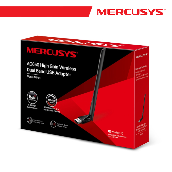Mercusys AC650 High Gain Wireless Dual Band USB Adapter - MU6H
