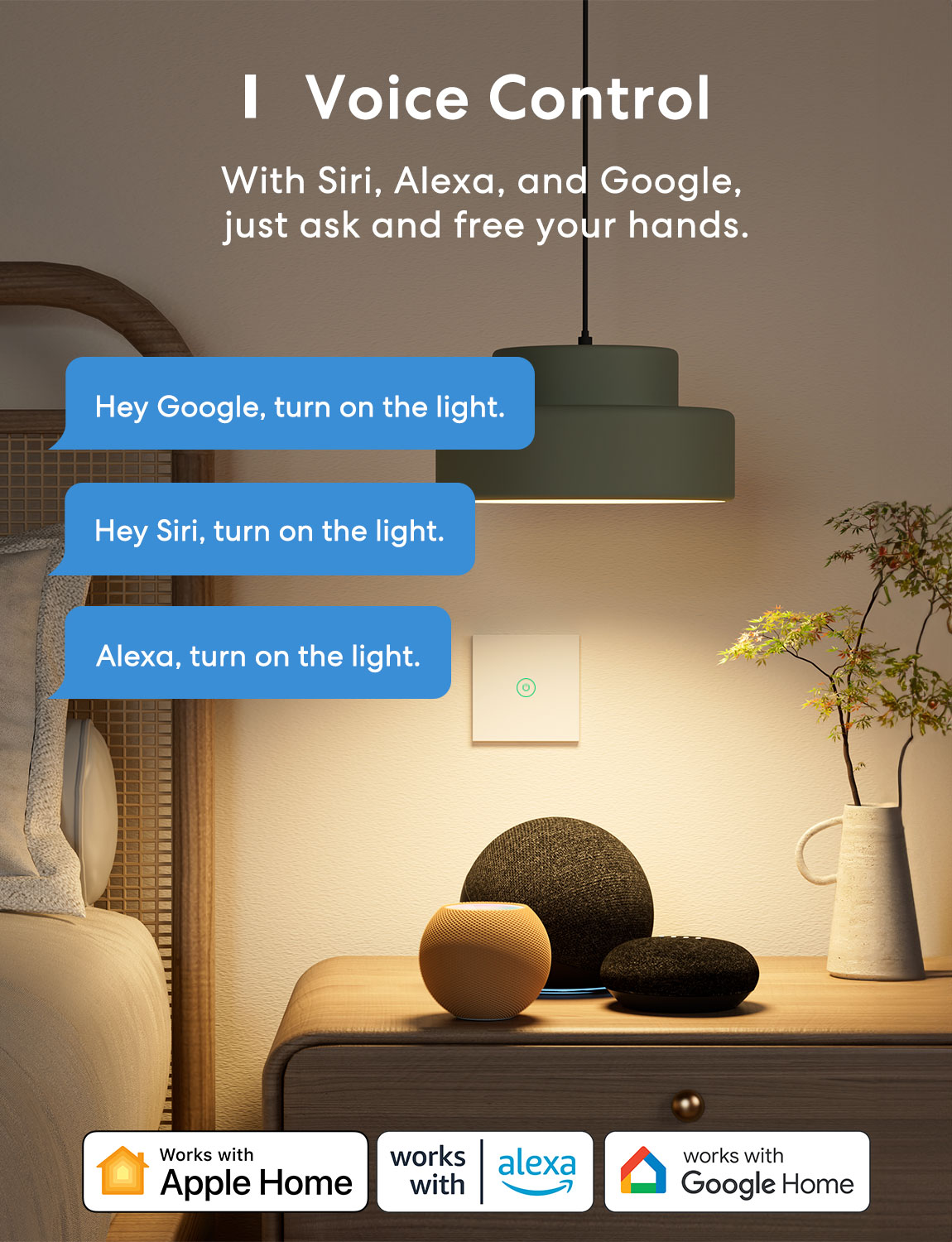 MSS510 TOUCH - Meross Interruttore Smart Wi-Fi a muro per luci - 1 WAY - AC 220V - Vetro temperato con retroilluminazione - Apple HomeKit - Google&Alexa