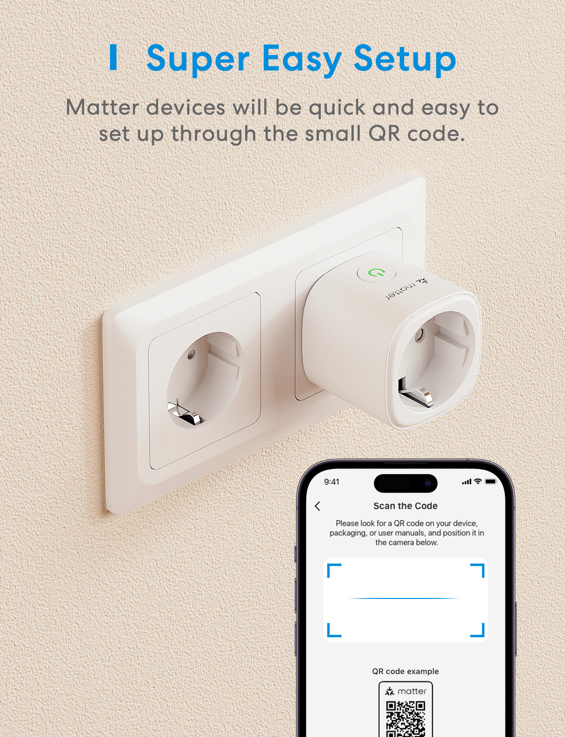 Configurazione semplicissima: scansiona il codice e tutto è fatto. Il protocollo standard e semplice semplifica l'implementazione e l'utilizzo dei dispositivi Matter.