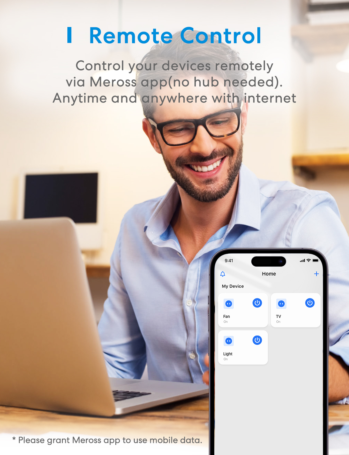 • Accendi/spegni gli elettrodomestici ovunque e in qualsiasi momento con l'app Meross.