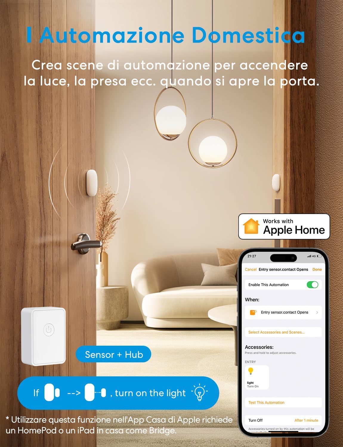 Avvisi: ricevi avvisi immediatamente sull'app Meross o sull'app Apple Home quando viene rilevata una condizione di avviso.
