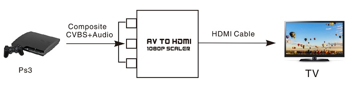 Convertitore da Cvbs composito ad HDMI con up scaler a 720 / 1080P