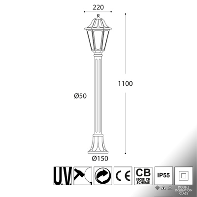 Realizzato in resina antiurto e resistente alla ruggine, corrosione e raggi UV, il MIZAR/ANNA è progettato per durare nel tempo, anche in condizioni atmosferiche difficili. La sua classe di protezione IP55 garantisce che il lampioncino funzioni perfettamente in presenza di pioggia, freddo, caldo o umidità, senza compromettere la qualità del materiale.