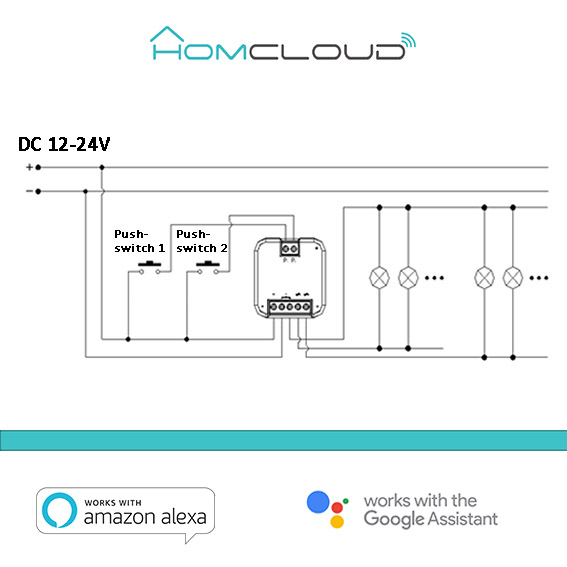 Modulo Relè Wi-Fi intelligente 12-24V IN e OUT da incasso 2CH (pulsante), comandabile da Smartphone e Vocalmente.