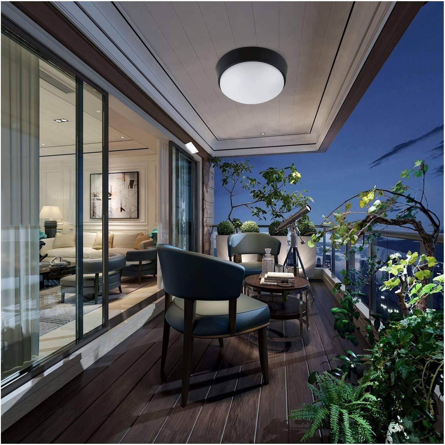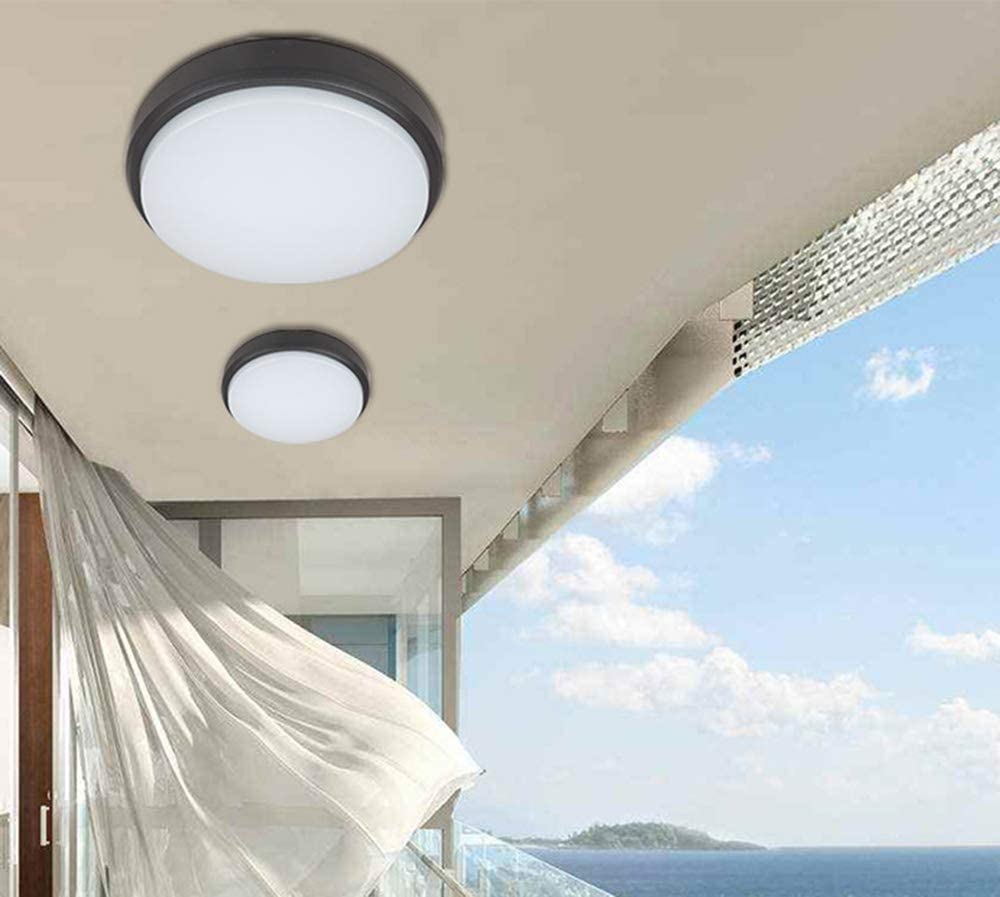 Plafoniera led rotonda adatta per montaggio a parete o soffitto in ambienti interni o esterni.