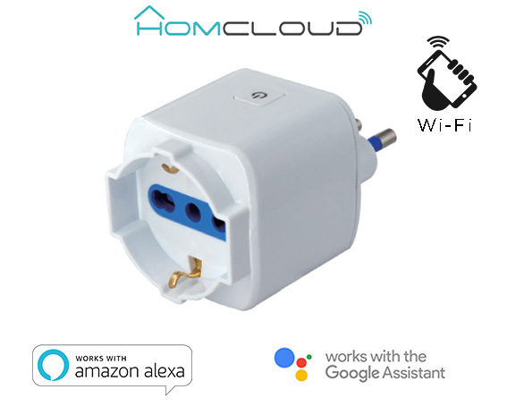 Presa Wi-Fi intelligente ITALIANA 16A, comandabile da Smartphone e Vocalmente. Spina 3 poli 16A, Presa schuko-bipasso.