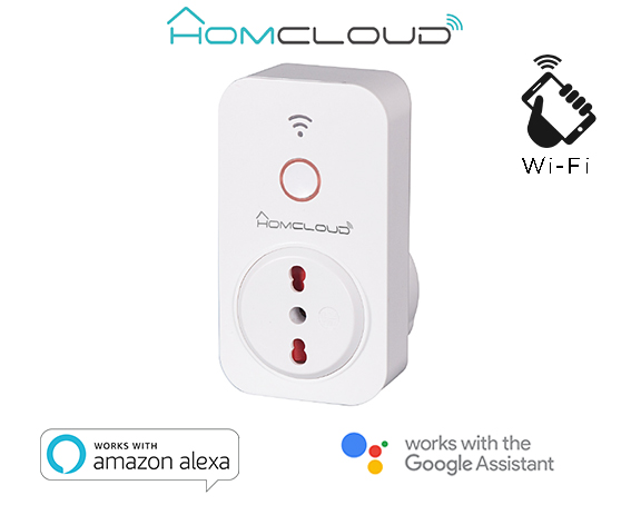 Presa Wi-Fi intelligente ITALIANA con monitoraggio energia incorporato, comandabile da Smartphone e Vocalmente. Uscita 16A, entrata 10 e 16A.