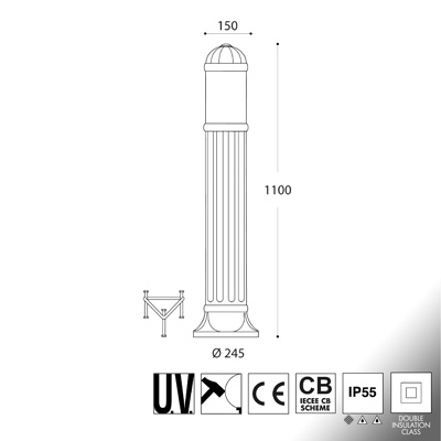 Il Sauro E27 è un bollard in stile classico, perfetto per l'illuminazione di ambienti esterni. Realizzato in resina antiurto e stabilizzato ai raggi UV, è progettato per resistere a ruggine e corrosione, assicurando durabilità anche in condizioni ambientali difficili.