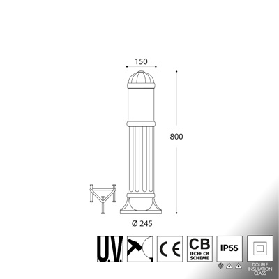 Il Sauro E27 è un bollard in stile classico, perfetto per l'illuminazione di ambienti esterni. Realizzato in resina antiurto e stabilizzato ai raggi UV, è progettato per resistere a ruggine e corrosione, assicurando durabilità anche in condizioni ambientali difficili.