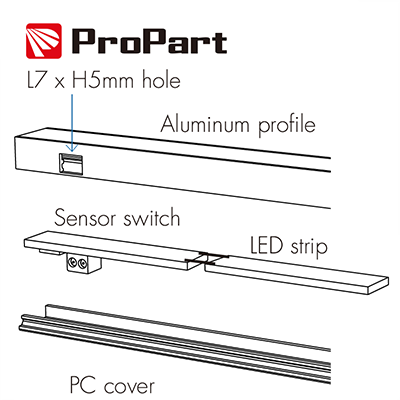 INSTALLAZIONE: Praticare un foro sul profilo di supporto, in prossimità del sensore. Sul lato posteriore del sensore è presente natro 3M per una facile installazione.