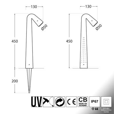 Fornito con una lampadina LED G9 di alta qualità, certificata TÜV-CB, il bollard assicura un'illuminazione duratura ed efficiente. Inoltre, la sua classe di isolamento II garantisce un alto livello di sicurezza.