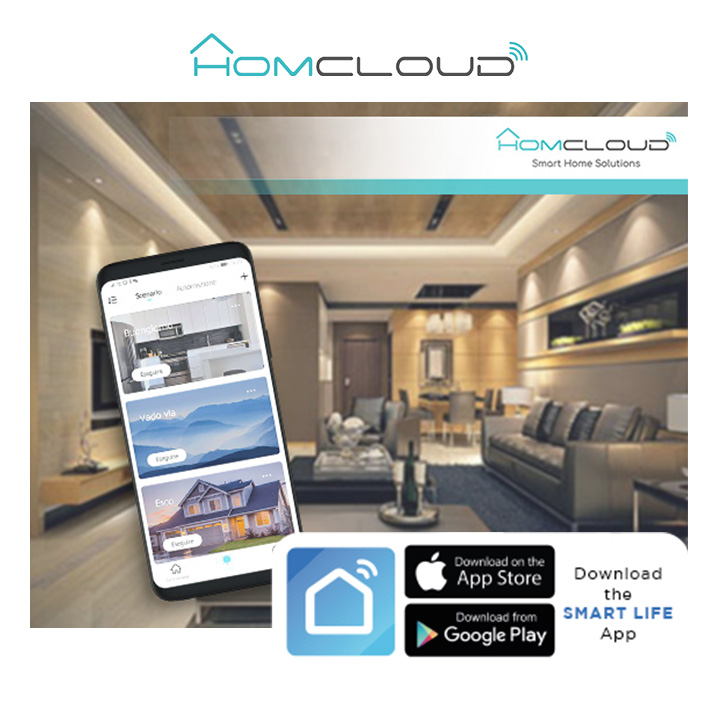 App di controllo Smart Life oppure Homcloud scaricabile gratuitamente da App Store o Google Play.
