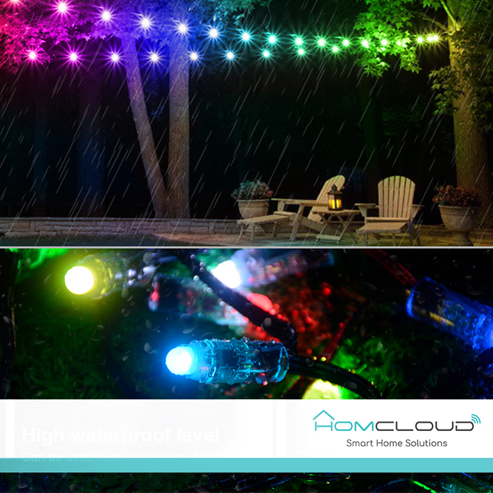 Stringa di Luci decorative da esterno Smart a Led RGB-IC Wi-Fi + Bluetooth + Telecomando RF 24 tasti, Dimmerabile - OUTDOOR IP65
