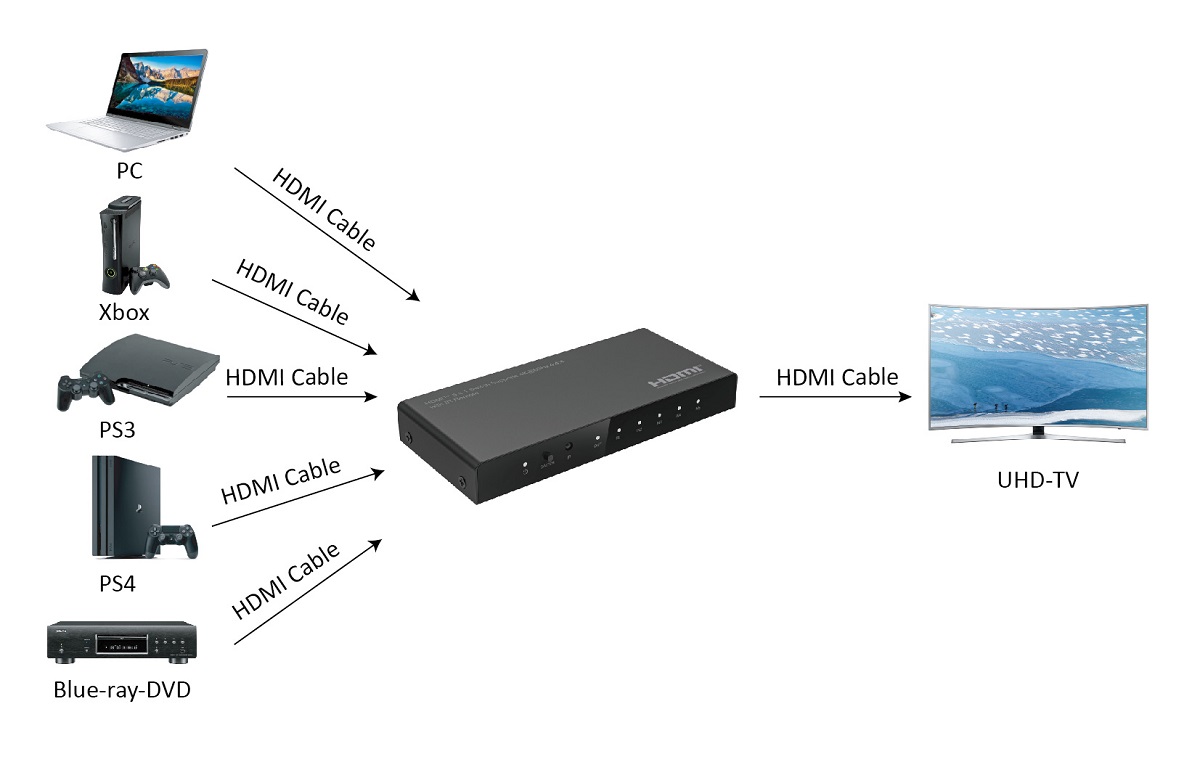 Lo switcher HDMI™ consente a un display o proiettore con quattro sorgenti video abilitate HDMI™. Lo switch è dotato di quattro ingressi HDMI™ e USB-B indipendenti, ciascuno dei quali supporta la risoluzione 4K e l'audio surround 7.1 e una porta USB per collegare un PC. È dotato di tre porte USB-A per tastiera, mouse, dispositivo USB e funzione di ingresso microfono e uscita audio, che consente ai clienti di condividere una coppia di tastiera, mouse e altri dispositivi USB tra quattro PC e dispositivi USB/HDMI™. Rimarrai stupito dal modo in cui questo switch video mantiene la qualità dell'immagine Ultra HD. Il 4K è supportato dai più recenti dispositivi A/V e offre una risoluzione quattro volte superiore a 1080p. Inoltre, poiché lo switch è retrocompatibile con l'alta definizione 1080p, puoi essere certo che qualsiasi sorgente video avrà un bell'aspetto nella tua applicazione di segnaletica digitale. Goditi un funzionamento senza problemi con due modalità di commutazione: commutazione manuale della porta tramite il pulsante del pannello frontale o commutazione dei tasti di scelta rapida tramite la tastiera.