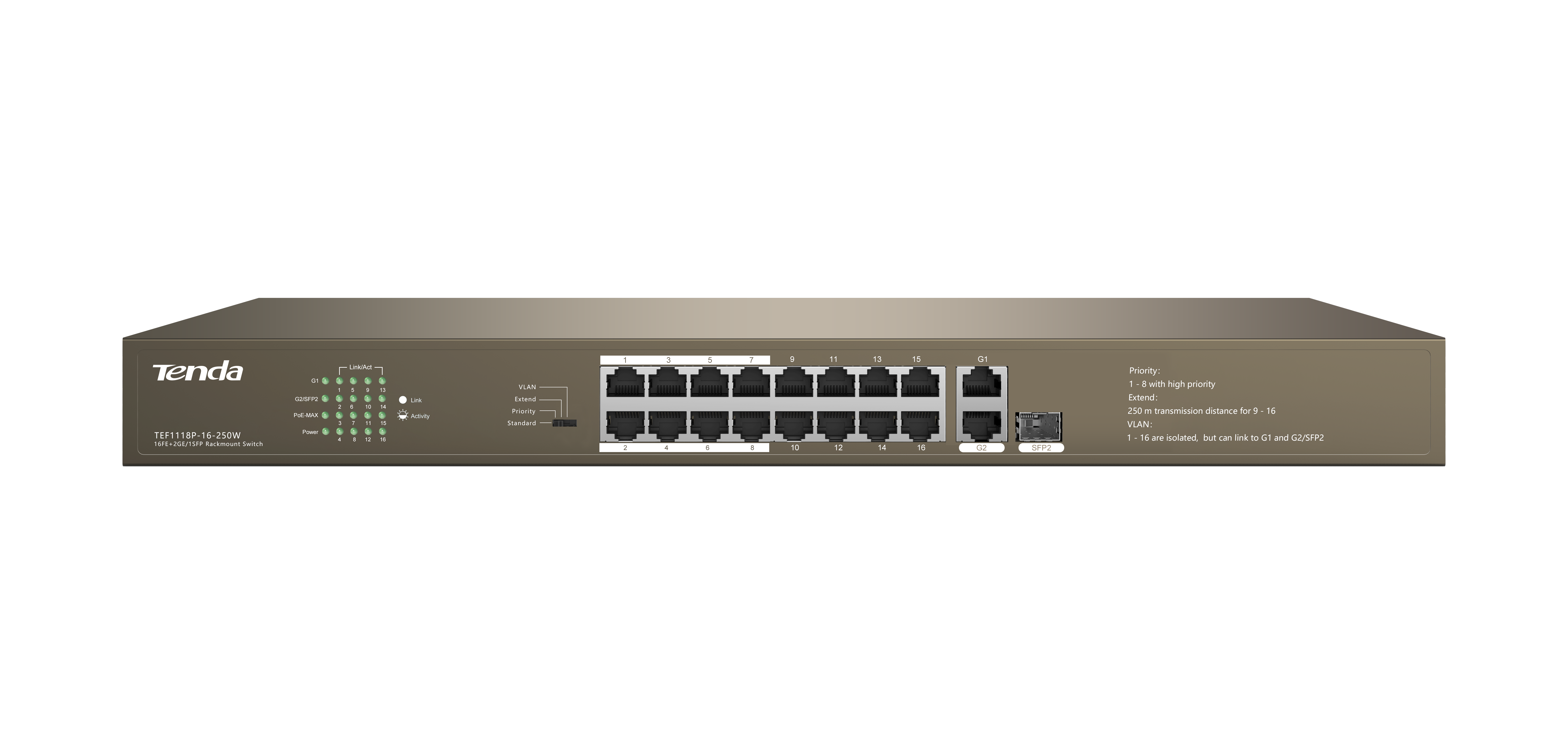 TENDA SWITCH TEF1118P-16-250W