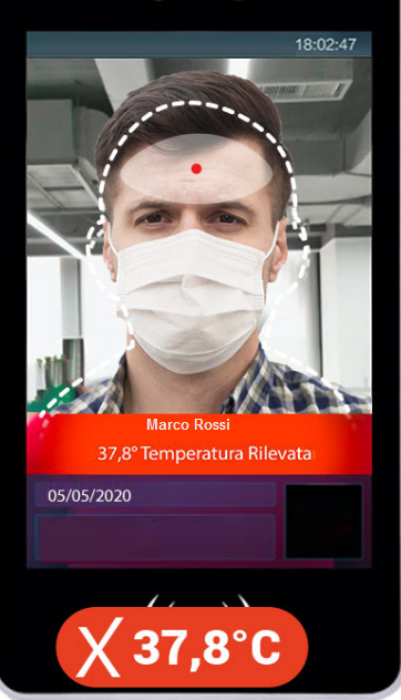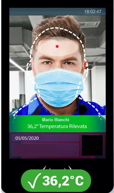 ![]() | Rileva la presenza della mascherina sul volto Misurazione automatica della temperatura anche in presenza della mascherina stessa. | ![]() |