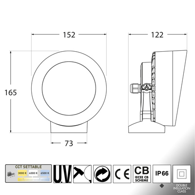 Anti-shock CB CCT settable CE Double Insulation Class II IP66 Recyclable Temperature+90-60 TUV UV Treated
