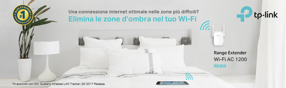 RE305 supporta la connessione di più dispositivi contemporaneamente grazie alle bande 2.4GHz a 300Mbps e 5GHz a 867Mbps. Utilizza la banda 2.4GHz per attività semplici come l'invio di e-mail e la navigazione web; sfrutta la banda 5GHz per lo streaming video in HD/4K e il gioco online.