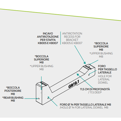 • predisposizione ancoraggi e ulteriore boccola in acciaio / provision for anchorages and additional steel bushing