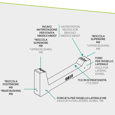 • predisposizione ancoraggi e ulteriore boccola in acciaio / provision for anchorages and additional steel bushing
